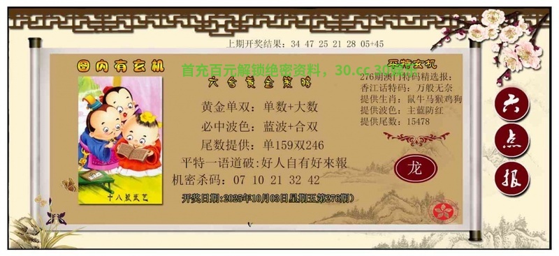 275期:⑦尾[0-1-3-4-5-6-7]开:鸡45准 |