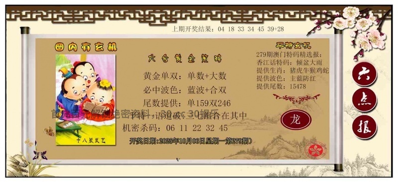 271期:平特连肖『羊鸡虎龙鼠』开:2肖 |